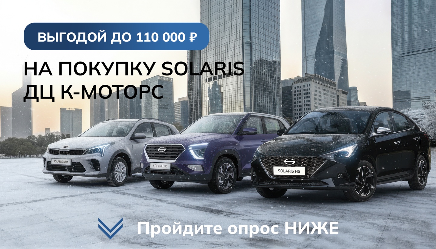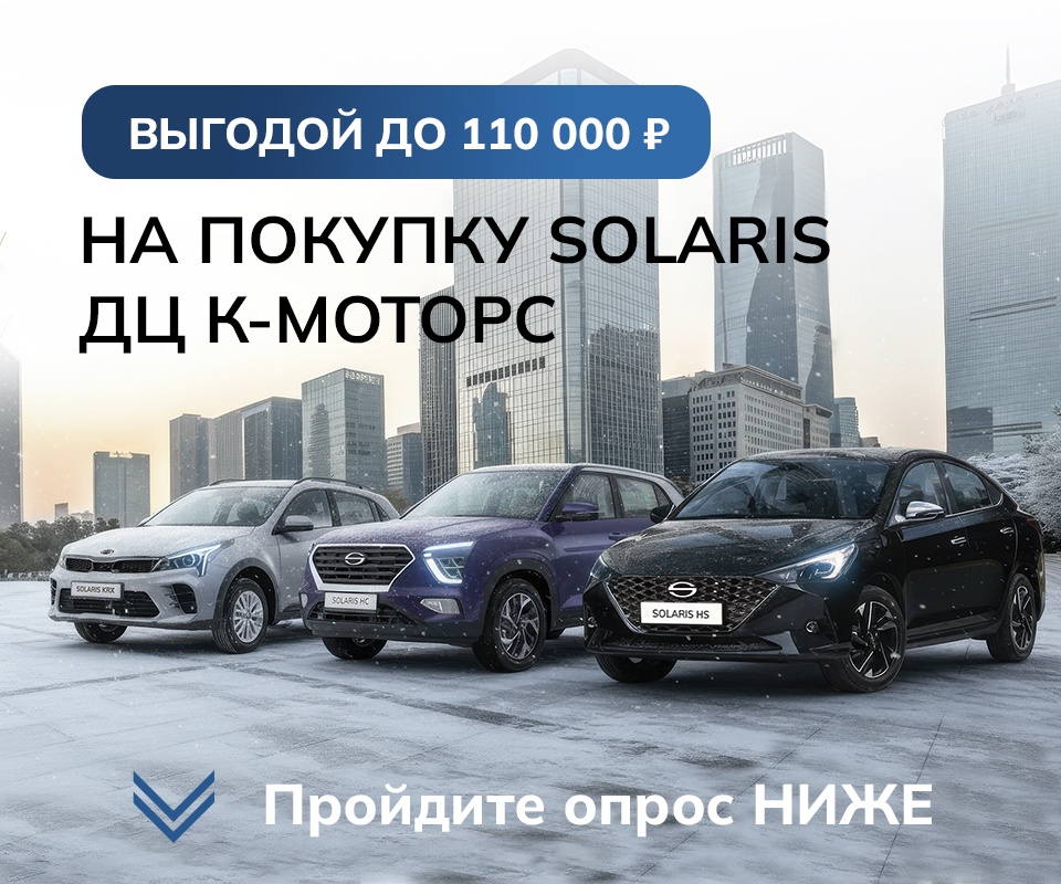 *Альфа-Банк: Предложение распространяется на автомобили SOLARIS HS, SOLARIS HC, SOLARIS KRS, SOLARIS KRX 2024,2025 года производства и действует в салонах официальных дилеров марки SOLARIS до 31.12.2025 (включительно). Параметры программы «Еще выгоднее и комфортнее»: валюта кредита – рубли РФ; срок кредита – 12-96 мес.; сумма кредита - от 100 000 до 10 000 000 руб. Диапазон Полной стоимости кредита в % годовых составляет от 0,005% до 18,830%. % ставка составляет от 0,010% до 18,300%, на диапазонах первоначального взноса от 10,000% до 99,999% от стоимости автомобиля, при сроке кредита от 12 до 96 мес и определяется индивидуально. Оценивайте свои финансовые возможности и риски*. Подробнее уточняйте в официальных дилерских центрах SOLARIS. Изучите все условия кредита в разделе «Кредит на покупку автомобиля у дилера» на сайте банка alfabank.ru. Кредит предоставляет АО Альфа-Банк. ИНН 7728168971 ОГРН 1027700067328 место нахождение 107078, г. Москва, ул. Каланчевская, д. 27. Ген.лицензия ЦБ РФ № 1326 от 16.01.2015. Предложение ограничено и не является публичной офертой.