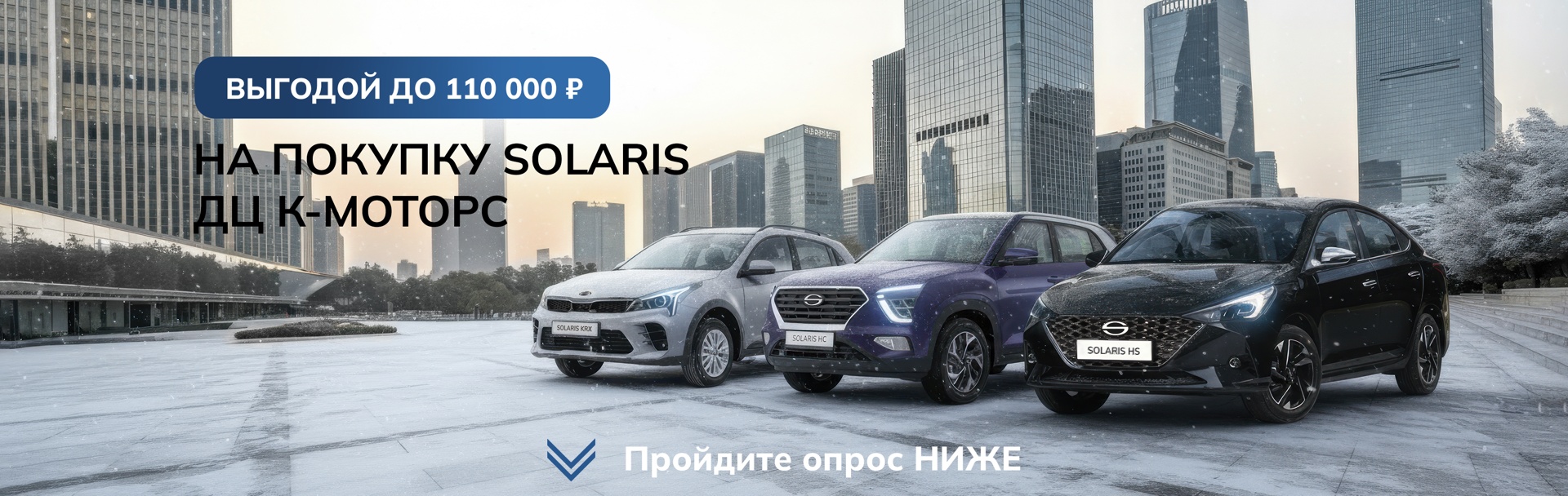 *Альфа-Банк: Предложение распространяется на автомобили SOLARIS HS, SOLARIS HC, SOLARIS KRS, SOLARIS KRX 2024,2025 года производства и действует в салонах официальных дилеров марки SOLARIS до 31.12.2025 (включительно). Параметры программы «Еще выгоднее и комфортнее»: валюта кредита – рубли РФ; срок кредита – 12-96 мес.; сумма кредита - от 100 000 до 10 000 000 руб. Диапазон Полной стоимости кредита в % годовых составляет от 0,005% до 18,830%. % ставка составляет от 0,010% до 18,300%, на диапазонах первоначального взноса от 10,000% до 99,999% от стоимости автомобиля, при сроке кредита от 12 до 96 мес и определяется индивидуально. Оценивайте свои финансовые возможности и риски*. Подробнее уточняйте в официальных дилерских центрах SOLARIS. Изучите все условия кредита в разделе «Кредит на покупку автомобиля у дилера» на сайте банка alfabank.ru. Кредит предоставляет АО Альфа-Банк. ИНН 7728168971 ОГРН 1027700067328 место нахождение 107078, г. Москва, ул. Каланчевская, д. 27. Ген.лицензия ЦБ РФ № 1326 от 16.01.2015. Предложение ограничено и не является публичной офертой.